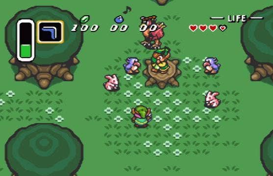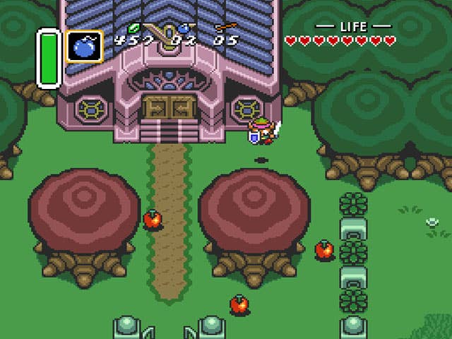 Nintendo clearly knows it created something special with A Link to the Past's "Light World prep / Dark World struggle" formula, because it used the same blueprint for Ocarina of Time and Twilight Princess. Interestingly, while I appreciate what Nintendo was aiming for with its successive uses of the mechanic, nothing tops entering the Dark World, checking my map, and seeing the blinking markers that indicate the size of the job in front of me. Even better is knowing that the Dark World itself is teeming with secrets. There are cervices and caves everywhere that hide Rupees, heart pieces, and even stories from unfortunate innocents and scoundrels who were pulled into the Dark World and transformed by its magic.