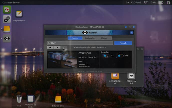 Much like Her Story, you investigate by searching keywords in a database from an in-game virtual desktop. The first word you search for is "love," automatically. Five videos pop up, maximum. Immediately, it's easy to parse at least one relationship. It's a married couple flirting over a video call, one of whom is out of town on a work assignment. Then you start to pick up on inconsistencies. In another conversation, one person in that couple calls who they're talking to "boo." In my handwritten notes, I scribbled down one short question: "Who is boo?"