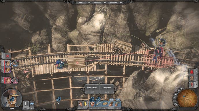 In fact, Desperados 3 twinges the same heartstrings as IO Interactive's Hitman games, and has some of the same frustrations. There's a lot of minute positioning and, as a result, accidental moves along the way. I was never fully fluid with the controls; even toward the end, I'd click to move Isabelle not realizing I had Doc selected, leading to his death. And I had to rebind the controls in order to settle in a good spot. The controller bindings are actually pretty good, but in the heat of combat, I tended to prefer mouse and keyboard.